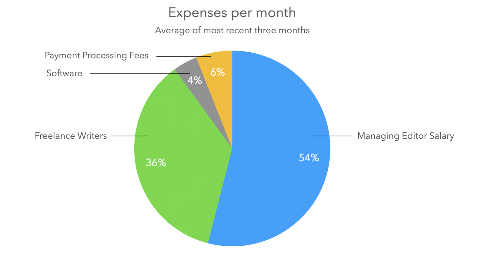 We have spent a different amount of money each month, in a variety of ways throughout the year, including on email courses, newsletters, articles and other projects. It’s difficult to find a single month that can accurately represent our spending patterns. As such, recency is probably the best approach, so here is an average of how we spent your money in the past three months.