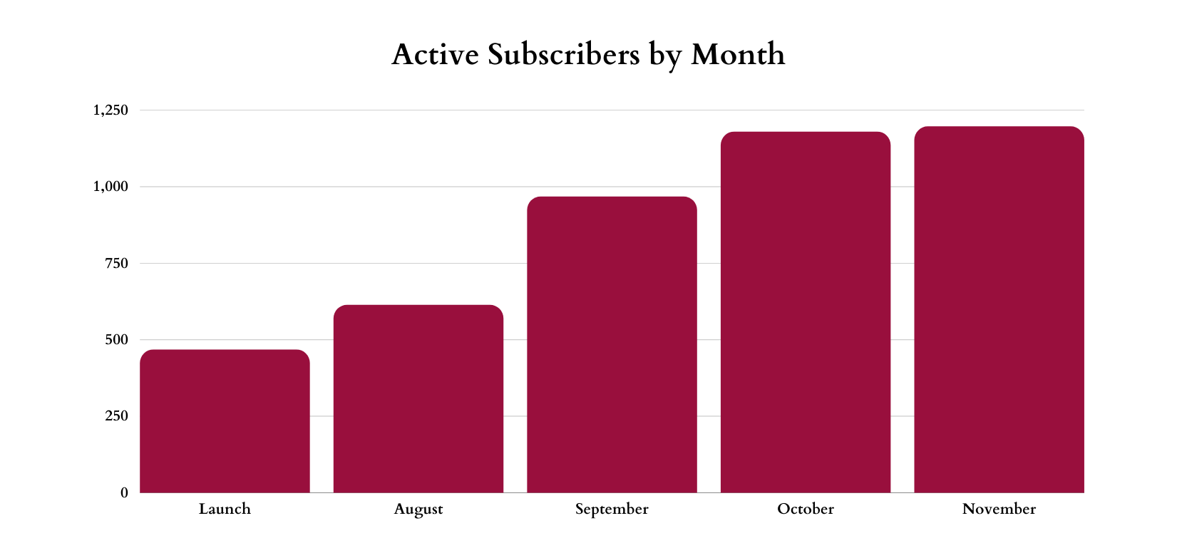 Pre-launch Crowdfunding. In early August, we began crowdfunding to support the launch of The Maple. We offered early supporters a one-time offer to lock in an annual Maple subscription for $24. This crowdfunding effort brought in 467 founding subscribers to kick-start The Maple.