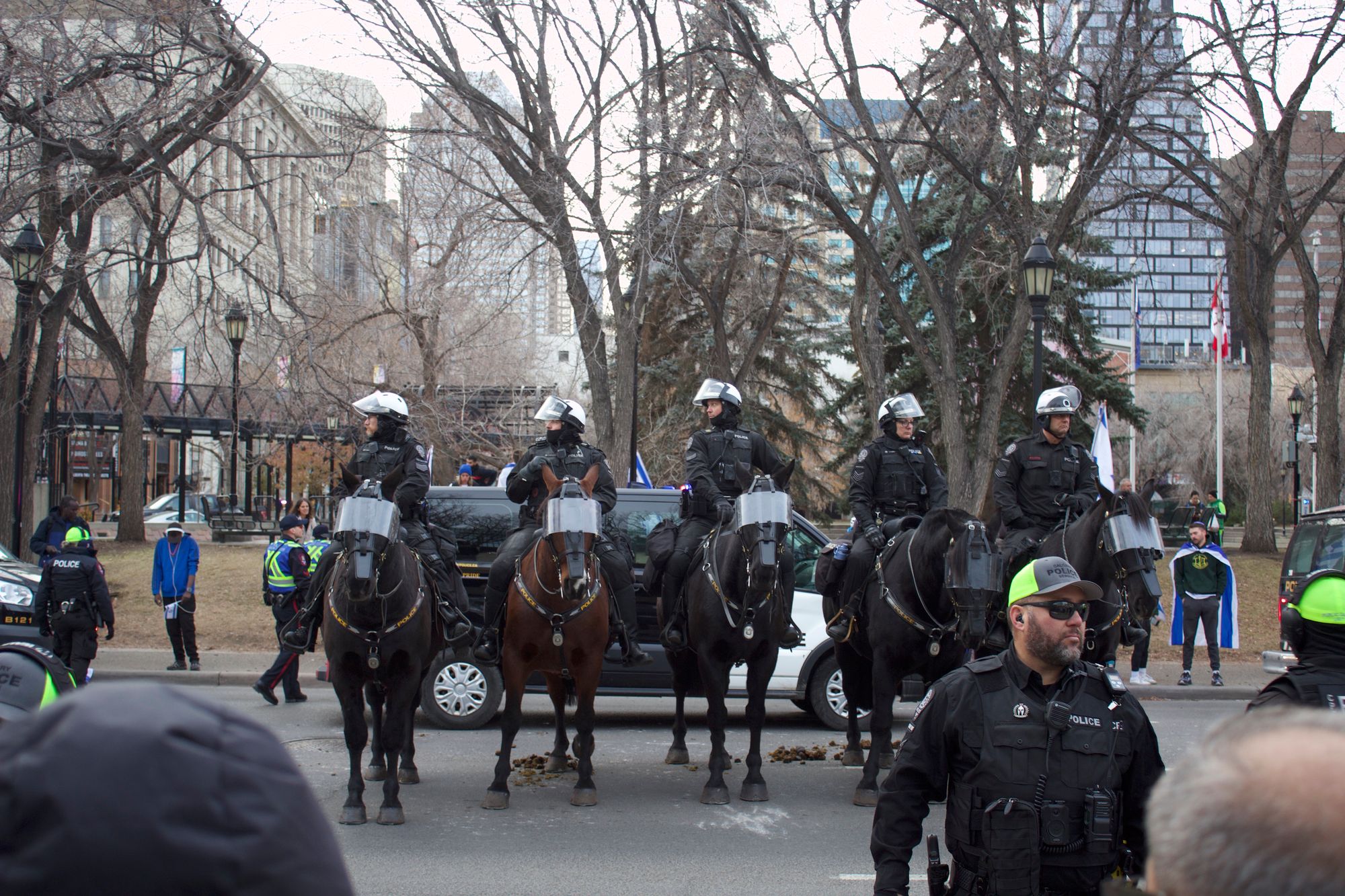 By around 4 p.m., all officers on scene were facing a group of pro-Palestinian protesters who continued to wave flags and chant pro-Palestinian slogans in the direction of the pro-Israel side while other attendees began a planned march through the city’s downtown core.