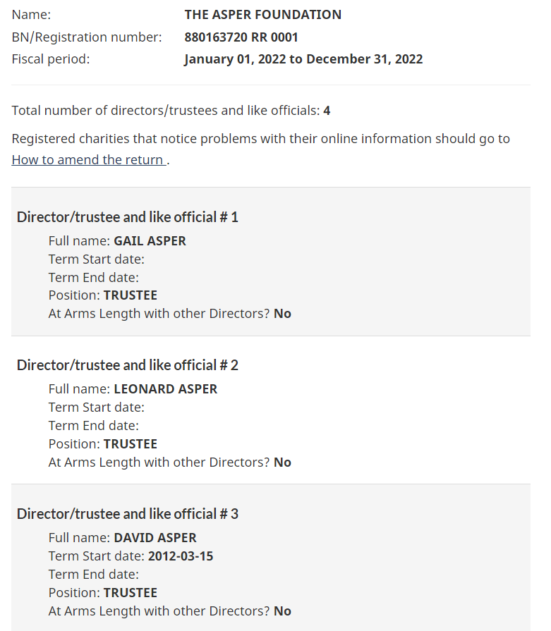 The Maple sent several messages to the Asper Foundation through its website’s form and also called their public number and left a voicemail. The Asper Foundation didn’t respond to any of these messages.