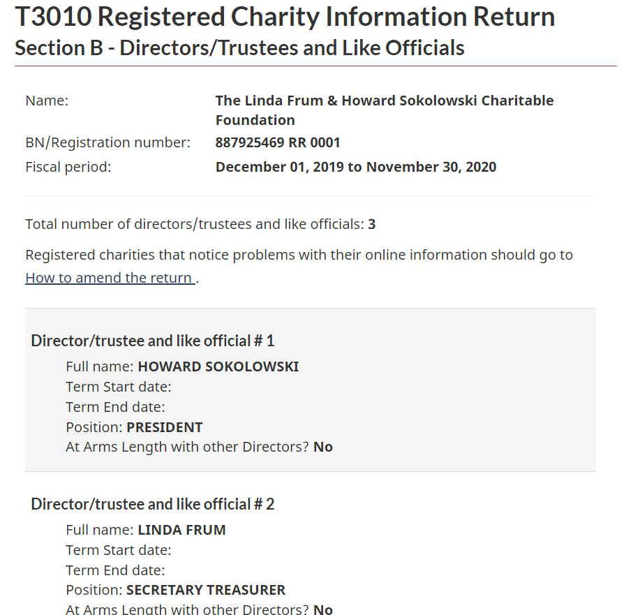 The Linda Frum & Howard Sokolowski Charitable Foundation