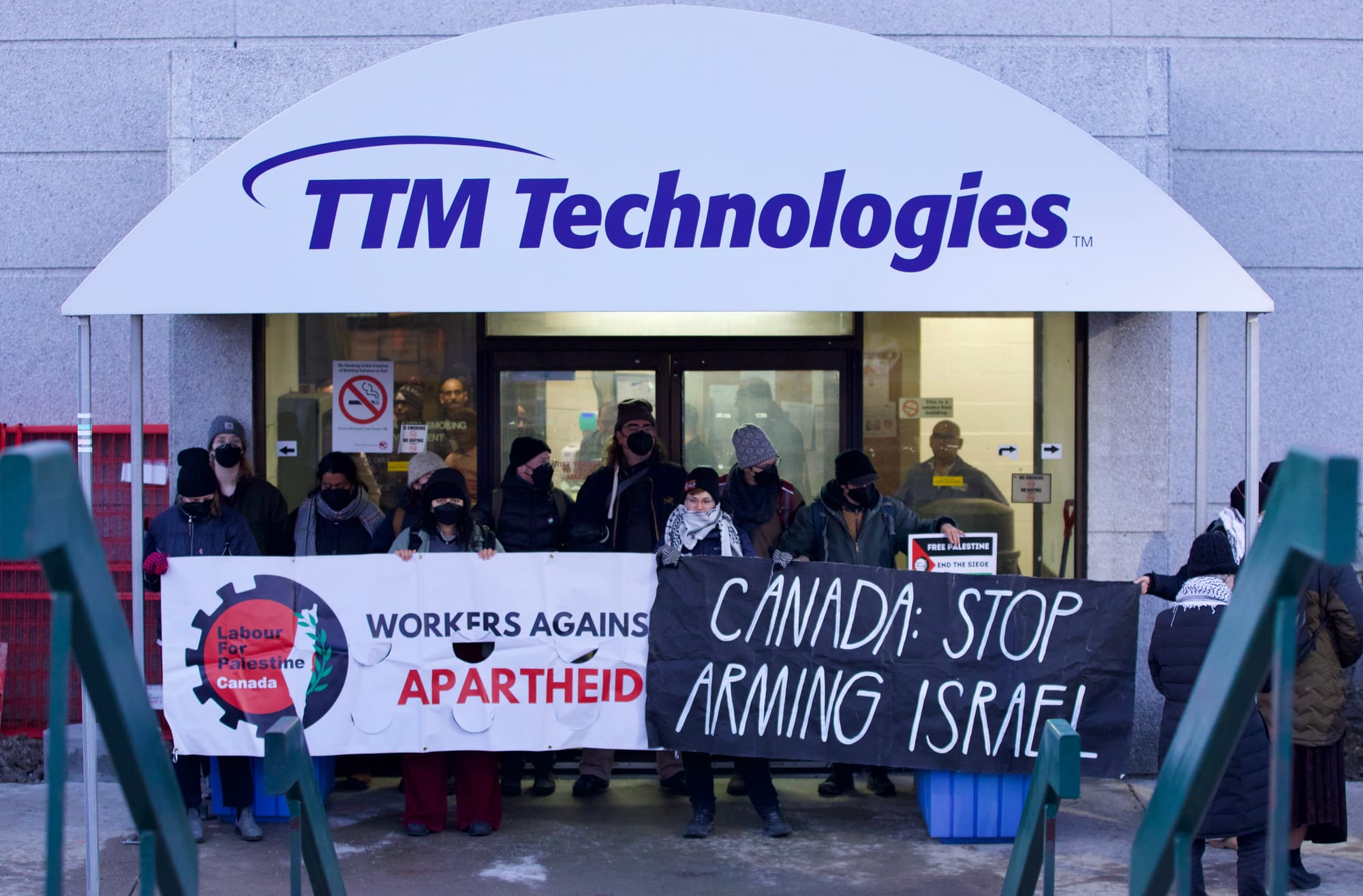 Palestine solidarity activists across Canada co-ordinated blockades at the offices of several arms manufacturers this week and renewed calls for an immediate embargo on all military exports to Israel.