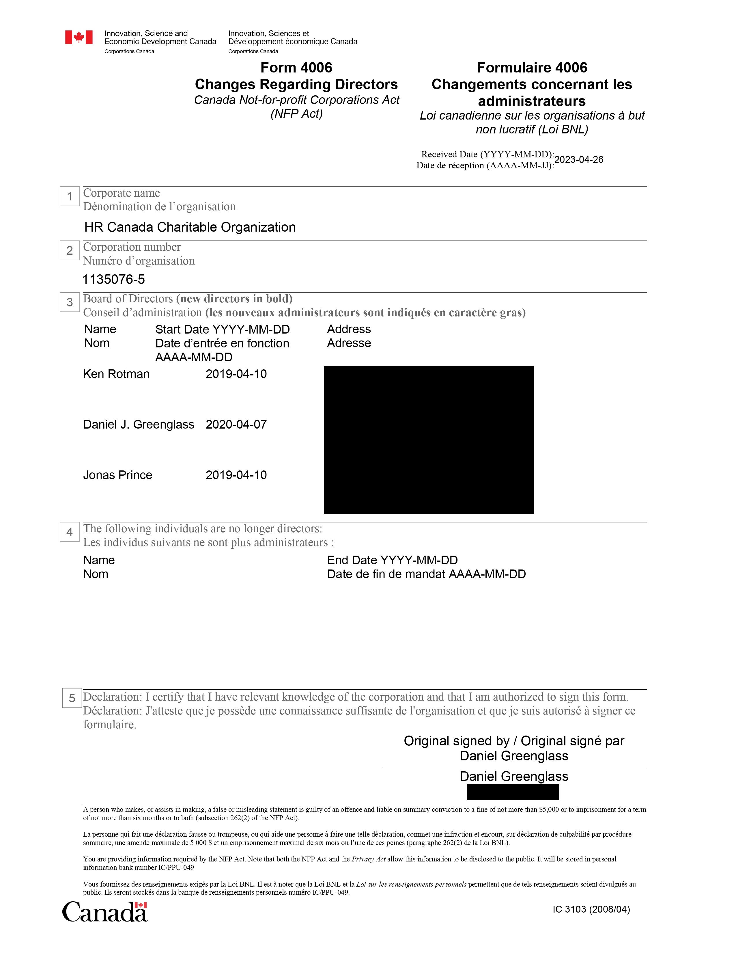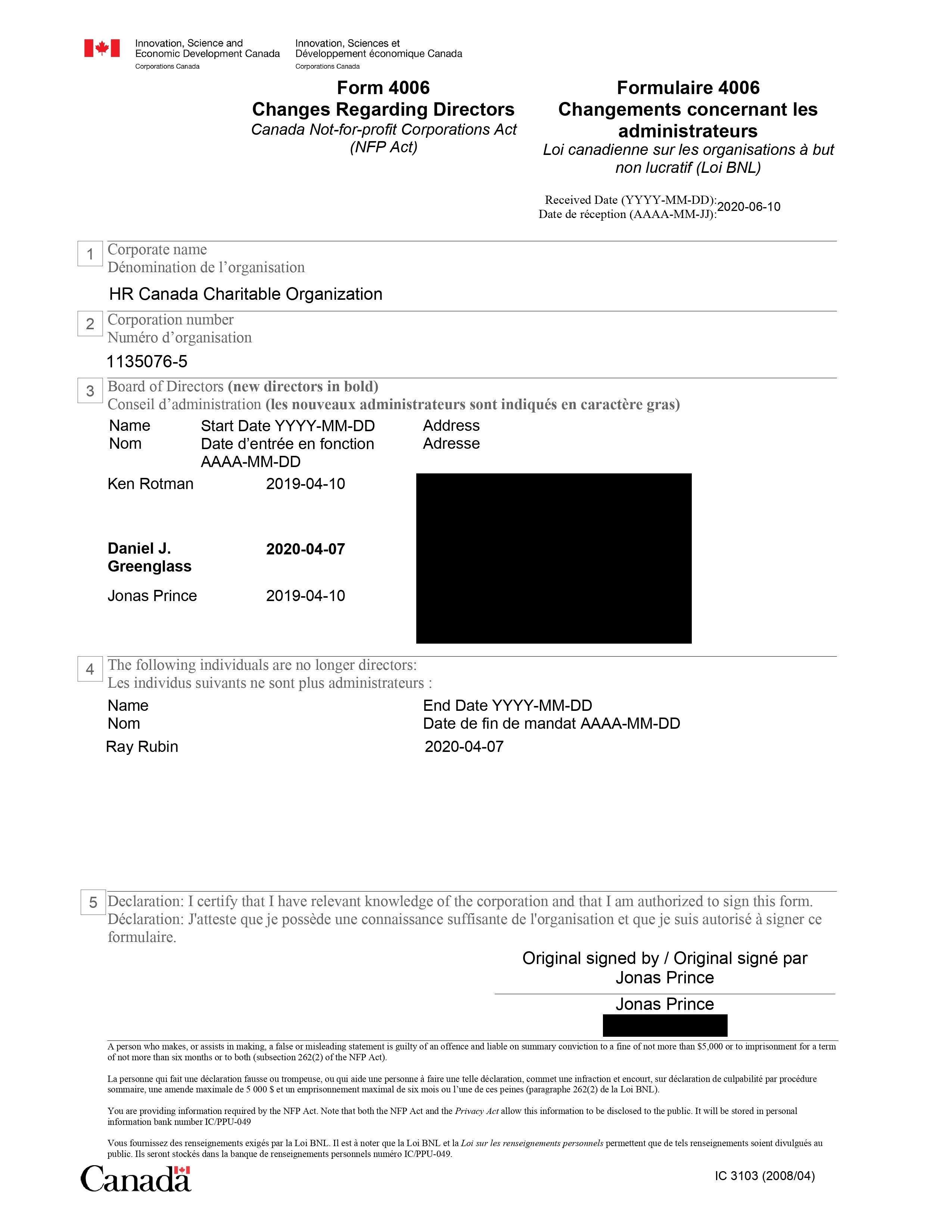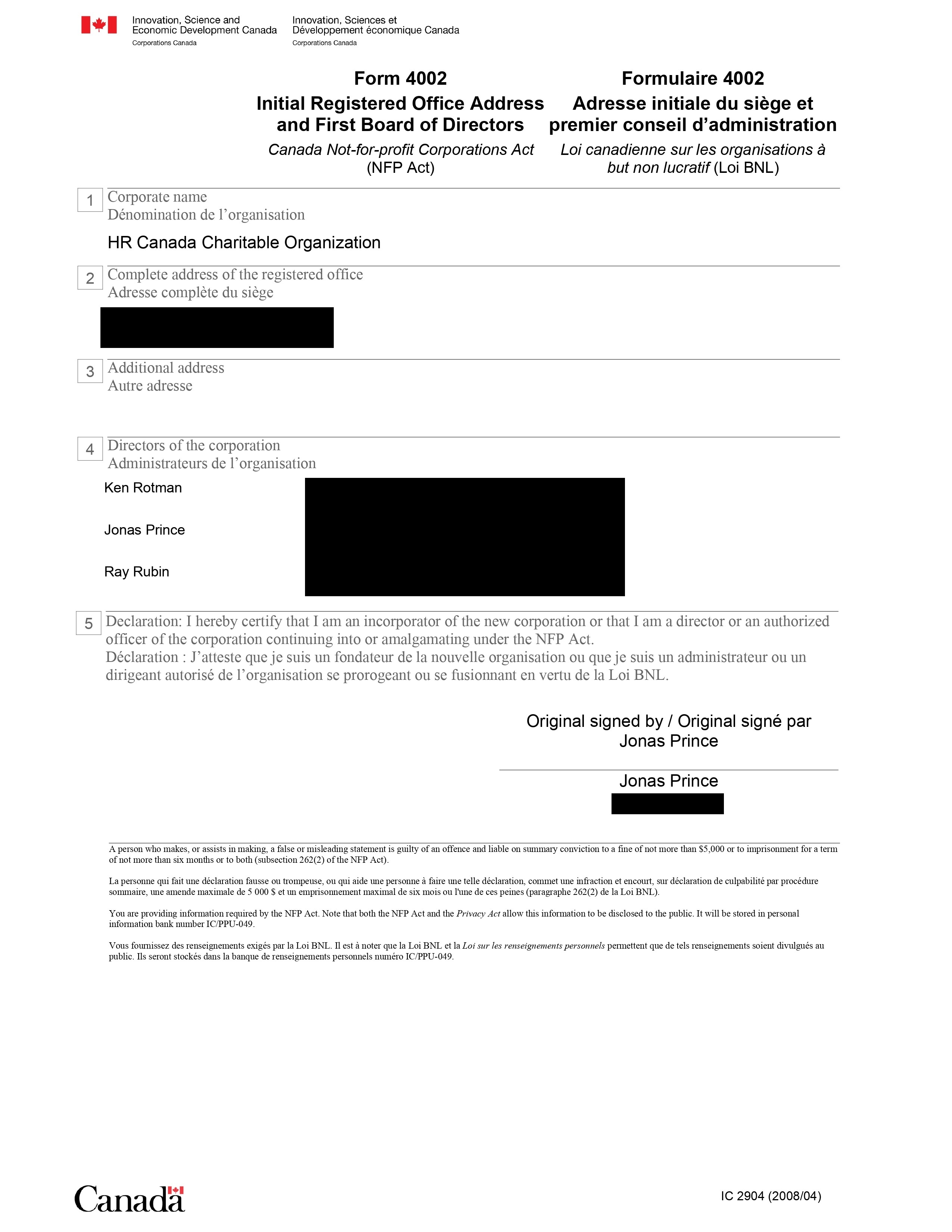 In May 2003, HRC was incorporated as a non-profit organization in Ontario, with three directors listed on the application: Shmuel Veffer, Heather Crawford and Kenneth Rotman.