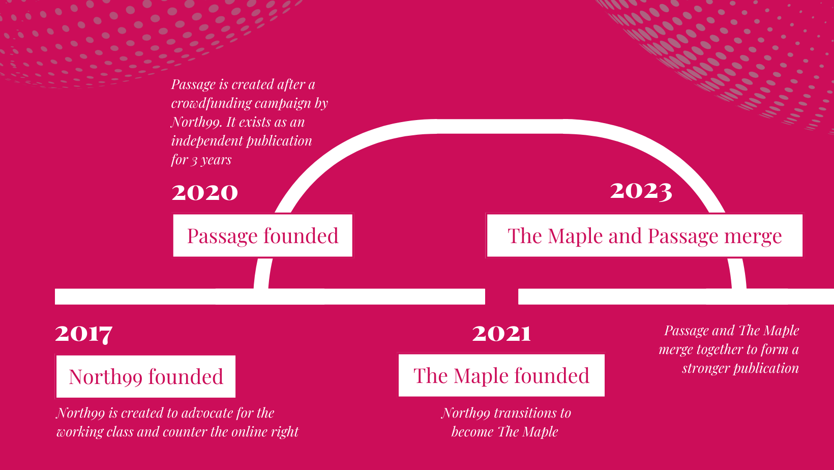 As time went on, it became clear that The Maple and Passage shared similar values. As such, the two teams agreed that merging the publications would be the best way forward, given that outlets generally have separate sections for opinion and news anyway.