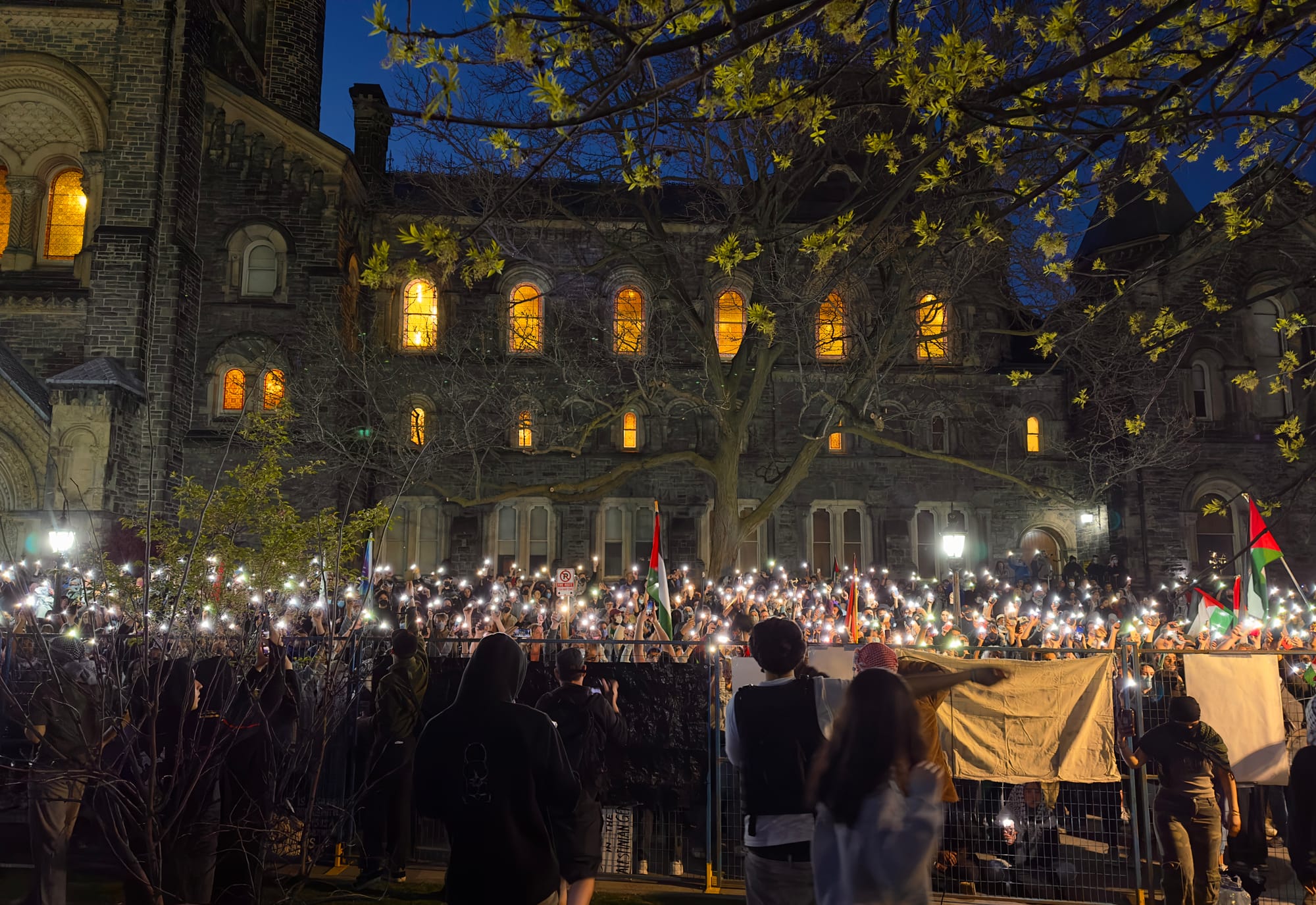 The crowd expected Toronto police to raid the camp after 10 p.m., the deadline specified in the university’s notice. But late at night, the university administration told encampment organizers they would not be removed — yet.
