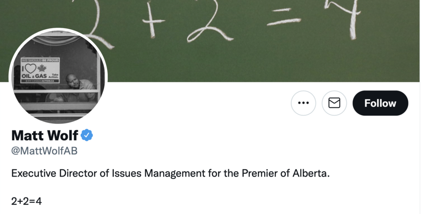 Official UCP Twitter troll Matt Wolf was perhaps the most aggressive in dismissing Albertans’ concerns that the government was lifting public health restrictions too quickly.
