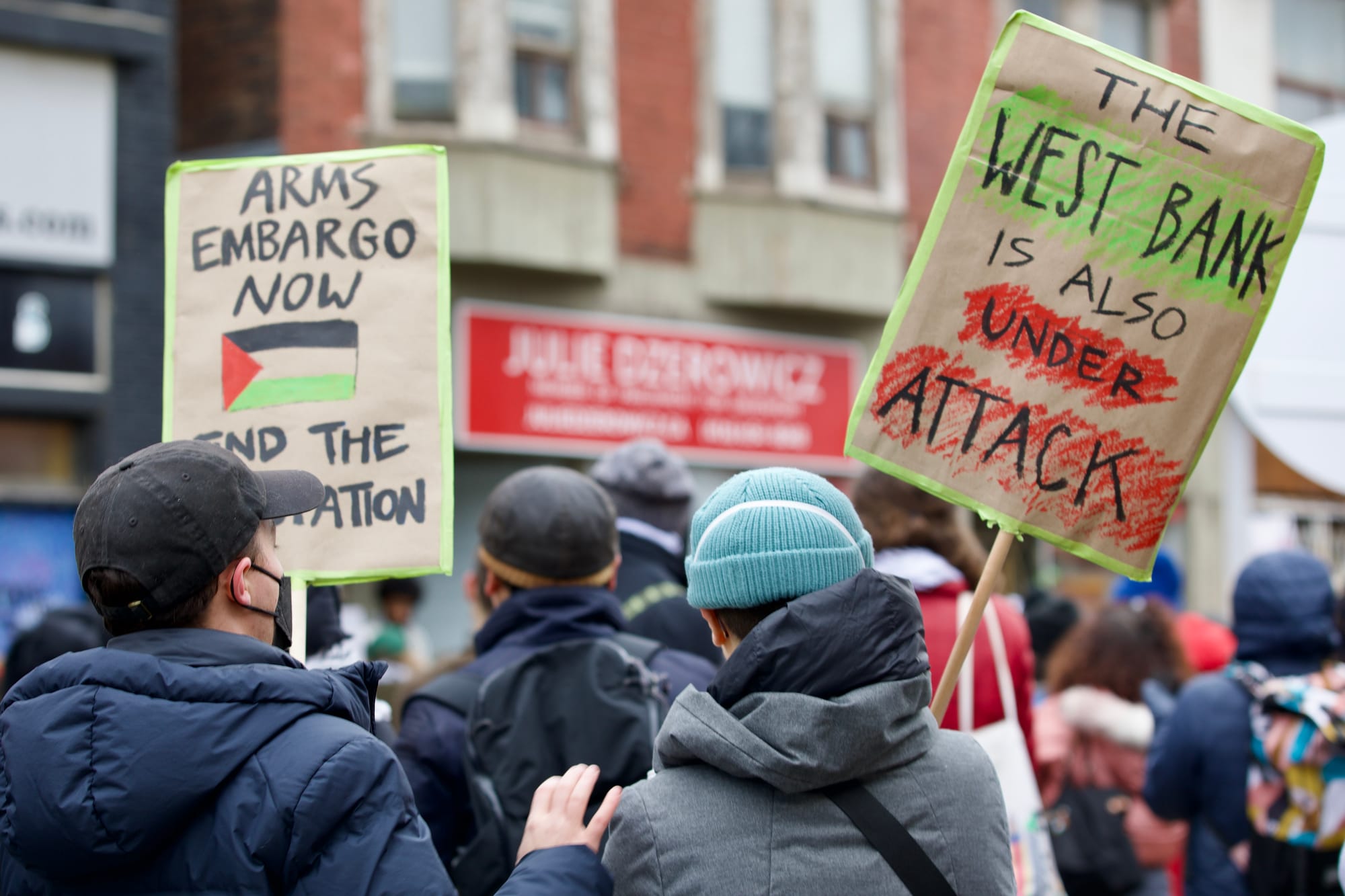 A group of Davenport and Parkdale-High Park residents marched from MP Julie Dzerowicz’s office to the MP office of Canada’s Minister of Justice and Attorney General, Arif Virani, last Sunday to repeat calls on the Canadian government to end all military exports to Israel.