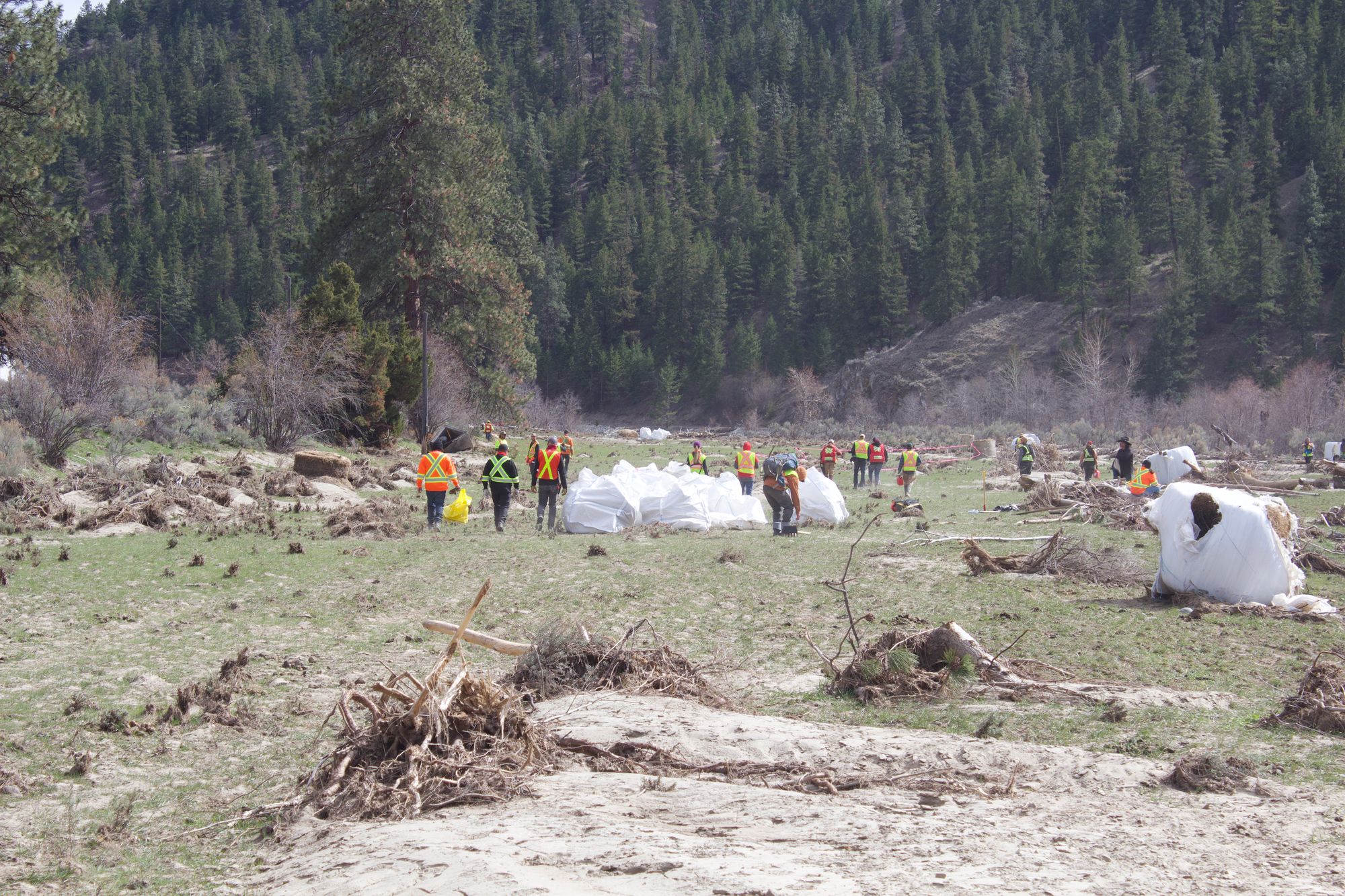 The fire spread into the valley, resulting in the emergency evacuation of the Scw'exmx, who are a branch of the Nlaka'pamux people, for several days. Blackened trees, no longer able to retain much of the rainwater that caused the river to rise last fall, pepper much of the west side of the valley.